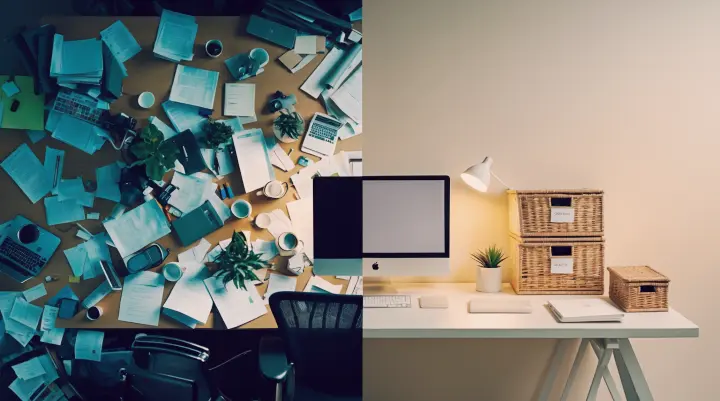 - ① 구역 분할: 한 번에 정리하려고 하지 마세요. 책상 서랍, 냉장고 위, 옷장 한 칸처럼 작게 나누는 것이 핵심입니다.