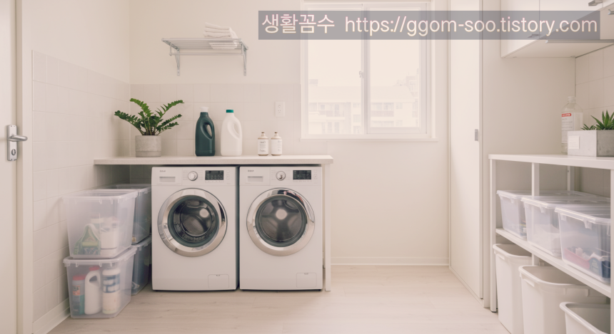 - 체크: 세탁 관련 용품이 세탁기 주변에 모여있는가